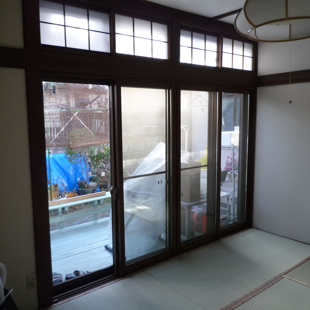 | 和室 | 断熱内窓工事、古民家風・壁天井格子クロス工事及び畳交換 |