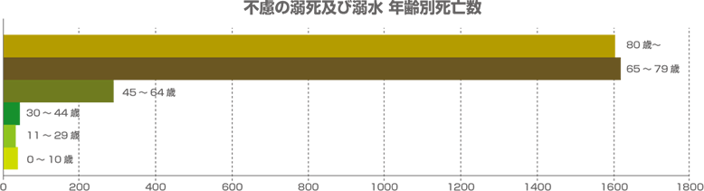 浴槽内溺死の8割以上は高齢者であり、その最大の原因と考えられます。